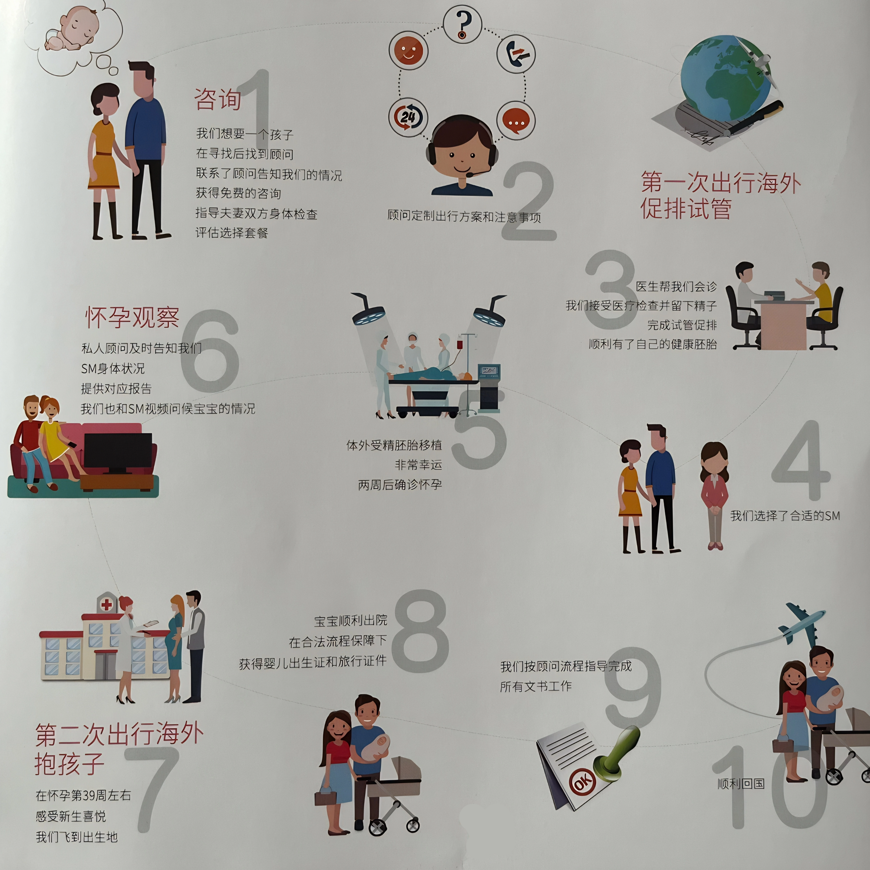 Each surrogate mother has a comprehensive medical and health management system in place to constantly monitor the healthy development of the fetus. After the baby is born, we will assist with a series of issues such as registration, returning to the home country, and education. This ensures that the intended parents have no worries and can simply prepare to welcome the arrival of their angel.